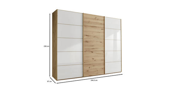 SCHWEBETÜRENSCHRANK 250/236/67 cm 3-türig Weiß, Eiche Bianco